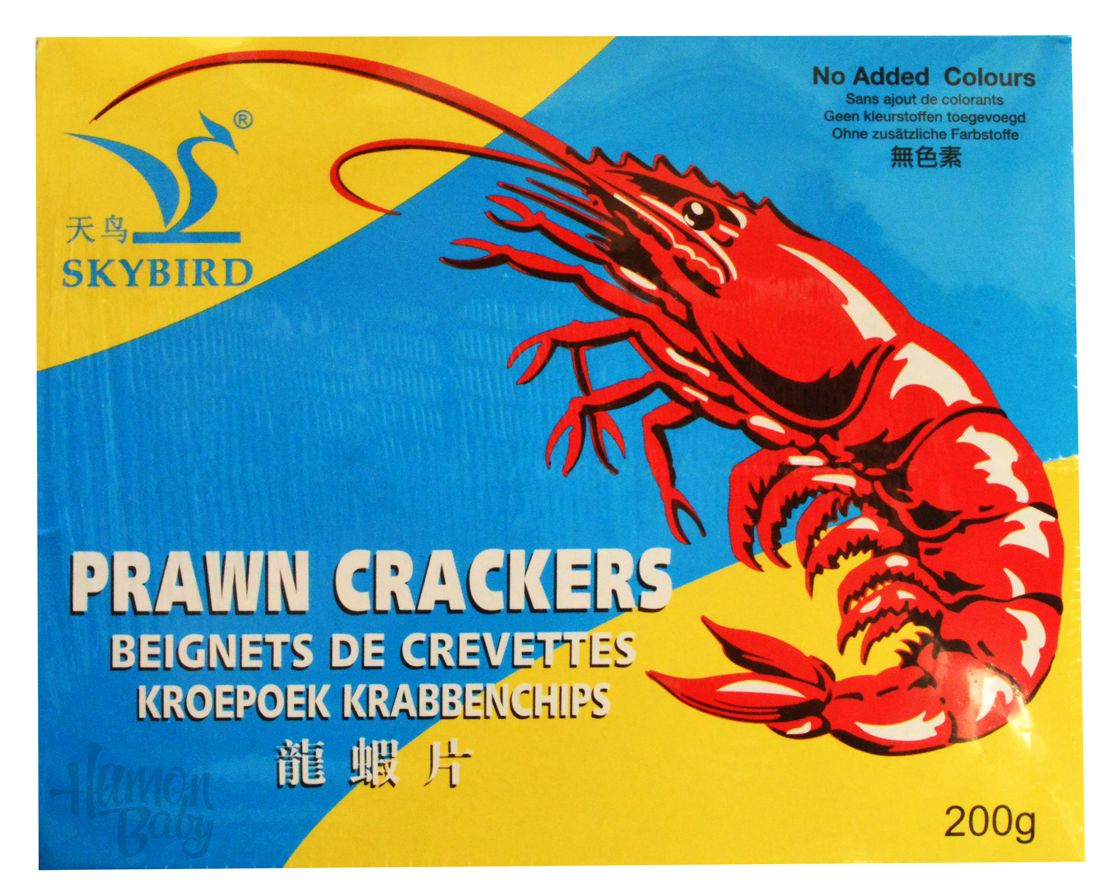 Склад: кукурудзяний крохмаль, м'ясо креветки 4%, цукор, сіль, глутумат натрію Е621, Порція 25 г. Харчова цінність порції: білок < 1 г, жир 0 г, вуглеводи 23 г, 310 мг натрій. Енергетична цінність порції: 100 ккал.