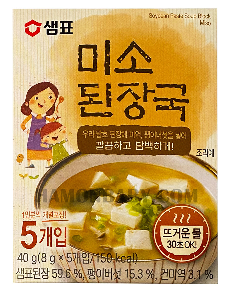 Склад: соєва паста (соя, пшеничне борошно, сіль, спирт), гриб енокі, екстракт боніто, цибуля, кукурудзяний сироп, морські водорості, картопляний крохмаль, екстракт водоростей, рисове борошно, динатрій 5-інозінат, динатрій 5-гуанілат, порошок анчоуса.