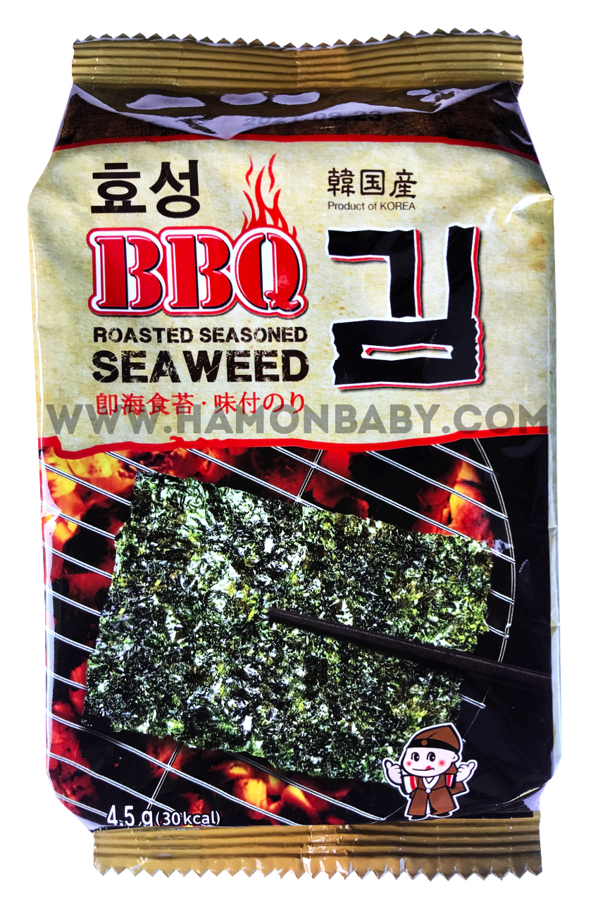 Склад: морські водорості, кукурудзяна олія, кунжутна олія, сіль, смак барбекю. Харчова цінність 4,5 г: жир 1,58 г, вуглеводи 1,13 г, білок 1,13 г, натрій 6,25 мг. Енергетична цінність 4,5 г: 25,5 ккал.