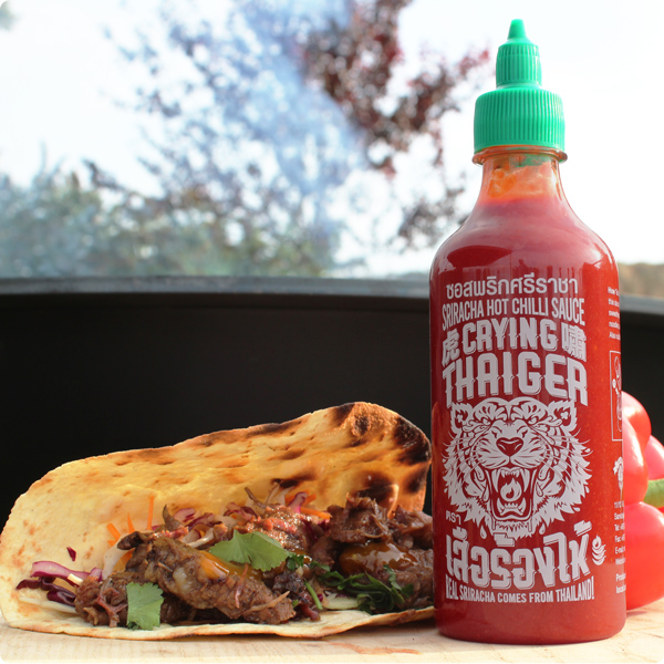 Зроблений у Таїланді соус Sriracha є багатою сумішшю справжнього тайського червоного перцю чилі та часнику.
