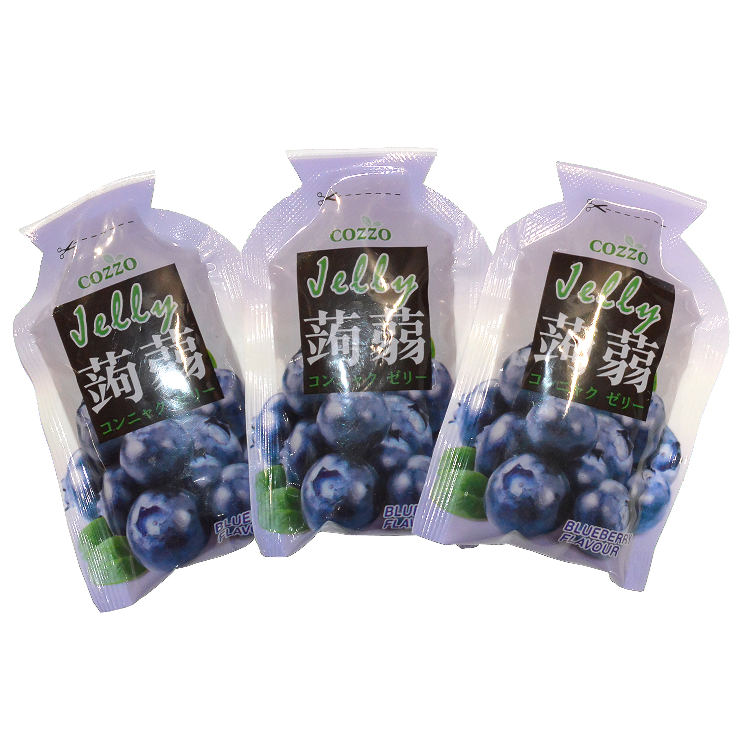 Склад: вода, цукор, сік чорниці, гелеутворювач (Е407, Е425i, Е410), лимонна кислота, яблучна кислота, штучний аромат та колір (Е102, Е129).