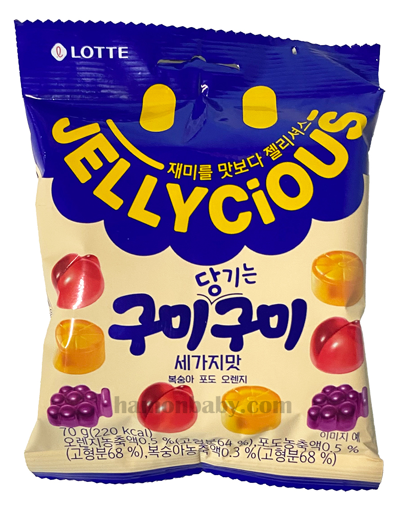 Склад: цукор, крохмальний сироп, желатин, d-сорбіт 5,3%, регулятор кислотності, концентрати (апельсин, персик, виноград), пектин, ароматизатори.