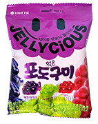 Склад: крохмальний сироп, цукор, розчин D-сорбіту 8,5%, підсилювач смаку, концентрат зеленого винограду, змішаний концентрат "Шайн Мускат", концентрат чорного сапфіру, концентрат червоного винограду, пектин, змішаний препарат (гардинію червоний колір, гардинію синій колір , вода, спирт), стевія оброблена ферментами, емульгатори, концентрат чорної моркви, ароматизатори.