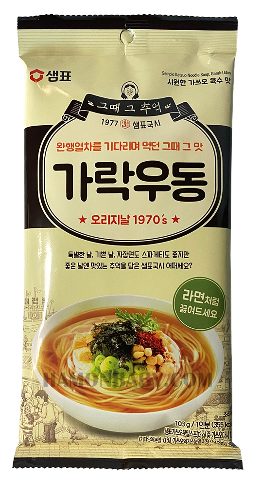 Суп Katsuo приготовлений з морепродуктів Кацуо, сушених анчоусів, бурих водоростей, сушених водоростей, насіння кунжуту, смажених у фритюрі кульок приправи і червоного перцю чилі.