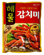 Склад: сіль, суміш спецій (пластівці мідії, глюкоза, пластівці часнику, екстракт креветок (пудра), червоний перець (пудра), бульйонний порошок, порошок молюсків, пластівці зеленої цибулі, каракатиця (порошок), чорний перець (пудра), анчоуси (пудра), боніто (пудра), екстракт дріжджів (пудра)), глутамат натрію, цукор, кукурудзяний крохмаль, кукурудзяний сироп (пудра), краби (екстракт), морепродукти (екстракт), соєвий соус, пальмова олія , креветки (екстракт), редис (екстракт), часник (екстракт).