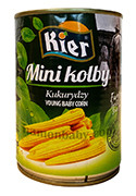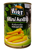 Вага сухого продукту: 230 г Склад: кукурудза бебі в качанах, вода, сіль, лимонна кислота Харчова (поживна) цінність у 100 г: білок 1 г, жир 0 г, вуглеводи 5 г, сіль 0,5 г, Енергетична цінність у 100 г: 28 ккал
