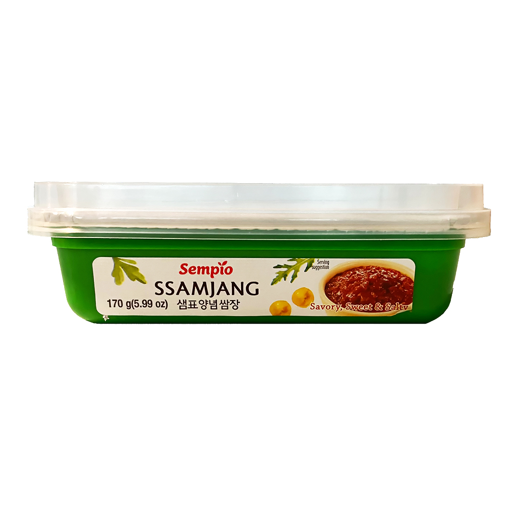 Ssamjang – це корейська паста з соєвих бобів для занурення, ідеальна суміш звичайної соєвої пасти (Doenjang), пасти з червоного чилі (Gochujang), кунжуту та овочів.