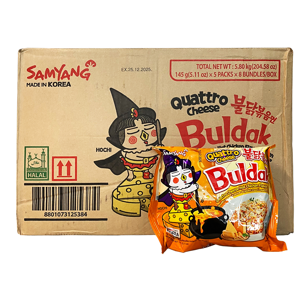 12-148 Смажена локшина Булдак Чотири сири (Quattro Cheese), гостра, 145 г х 40 шт, ТМ Samyang, Республіка Корея