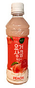 Склад: вода, цукор, сухе знежирене молоко, персиковий концентрат, декстрин, лимонна кислота, ароматизатор персик, соєва клітковина, антипінний засіб, бактерії Enterococcus Faecalis, фіолетовий барвник солодкої картоплі, лаковий барвник, ферментативно модифікований рутин.