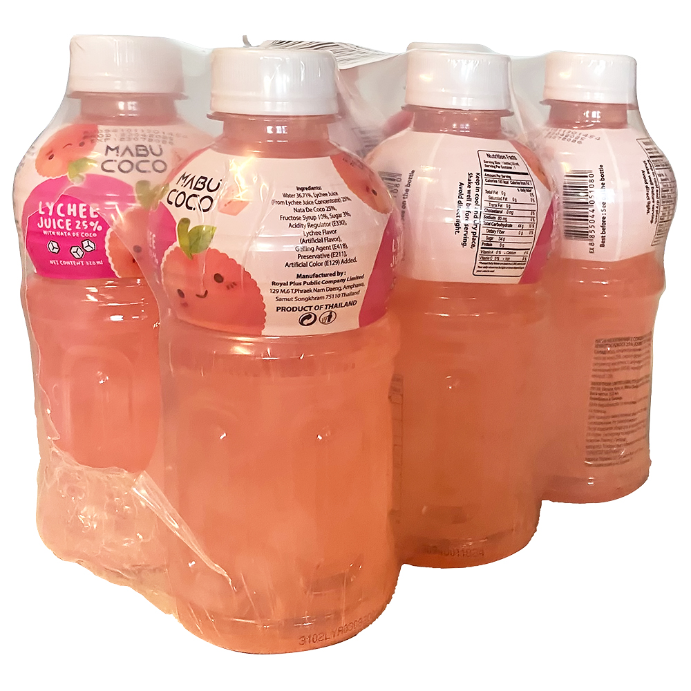 Склад: вода 36,71%, сік лічі (з концентрату соку лічі) 25%, кокосові вершки (nata de coco) 25%, сироп фруктози 10%, цукор 3%, регулятор кислотності Е330, аромат лічі, гелеутворювач Е418, консервант Е211, штучний фарбник Е129.