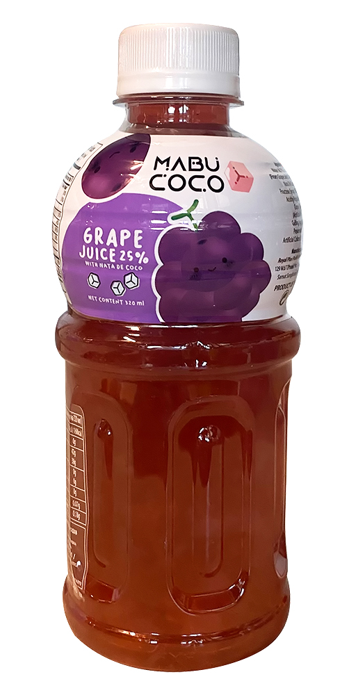 Склад: вода 36,71%, виноградний сік (з концентрату виноградного соку) 25%, кокосові вершки (nata de coco) 25%, сироп фруктози 10%, цукор 3%, регулятор кислотності Е330, аромат винограду, гелеутворювач Е418, консервант Е211, штучний фарбник Е129, Е133.