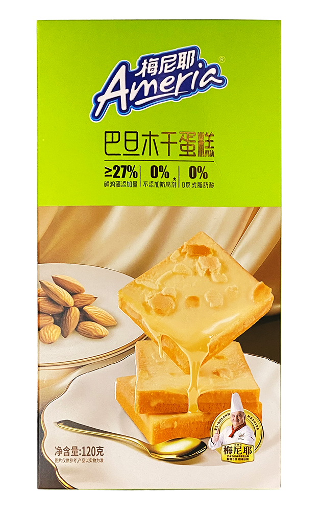 Склад: яйця (27%), пшеничне борошно, цукор, рослинна олія, трегалоза, шматочки мигдального ядра (2%), лактоза, емульгатор, лецитин, сіль, ксантанова камедь.
