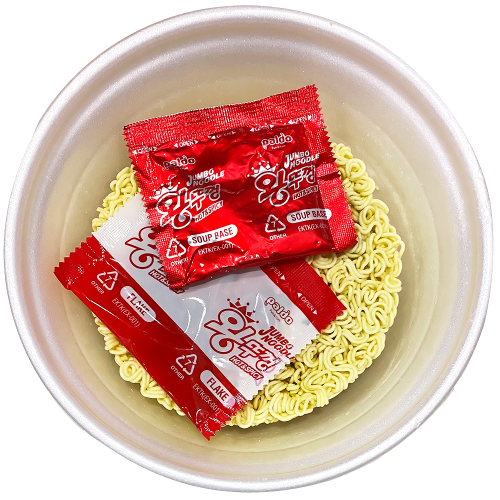 - супова основа: сіль, глутамат натрію, соєвий соус, штучний аромат грилю, червоний перець, цукор, соєва паста, спеції, екстракт дріжджів, часник, чорний перець, антикакінг anti-caking agent, імбир, паприка, підсилювач смаку, пряна олія;